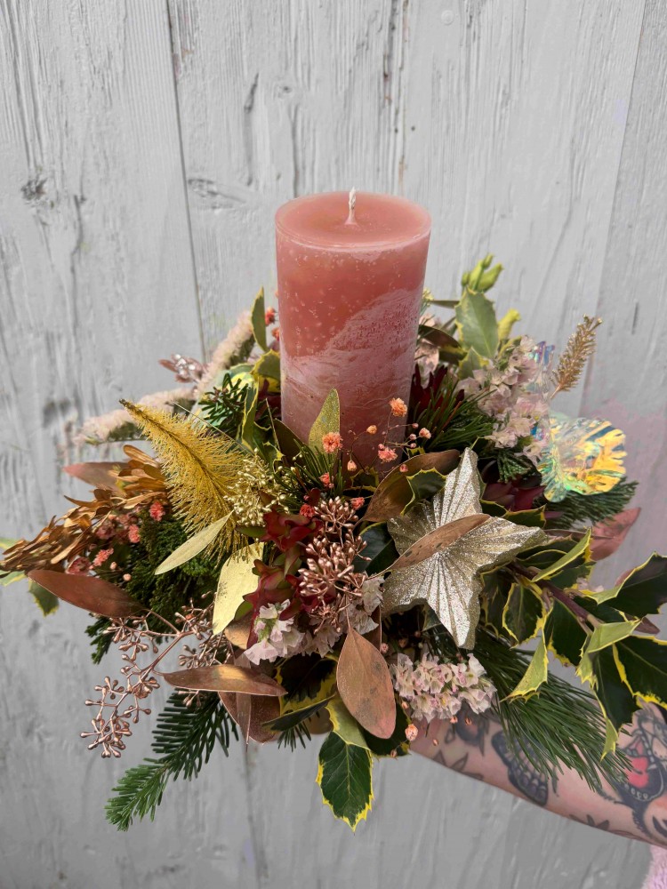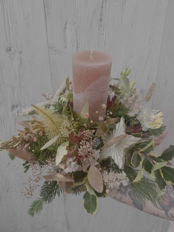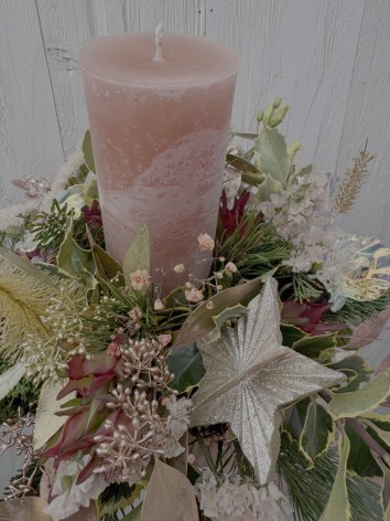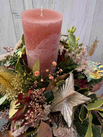 Arrangement de bougie avec conifères et élément de Noel lumineux