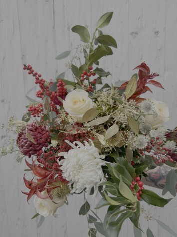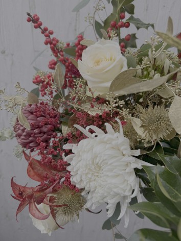 Bouquet de fleurs de saison en rouge et blanc qui rappelle les célébres cannes à sucres